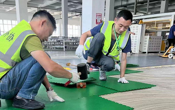 Wemats soft floor tiles (PVC interlocking floor) laying the fireworks warehouse